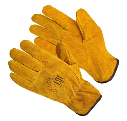 Перчатки кожаные цельные спилк желтые Драйвер