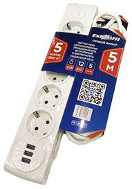 Удлинитель EX-001 5 метров БЕЗ USB БЕЛЫЙ EXPROFIL