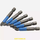 набор бит ЦВЕТНЫХ КРЕСТОВЫХ ДВУХСТОРОННИХ С ОГРАНИЧИТЕЛЕМ И МАГНИТНЫМ АДАПТЕРОМ PH2X65 (5 штук)